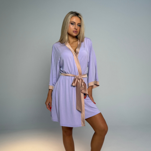 Badematil – kolekcija Catalina  u nežnoj lavanda nijansi osmišljen je za trenutke potpunog opuštanja. Lagan, udoban i prijatnog kroja, izrađen od kombinacije modala i elastina, prijatno prijanja uz telo i pruža izuzetnu mekoću. Pojas u struku omogućava savršeno pristajanje, dok nežna boja dodatno ističe osećaj mira i elegancije.